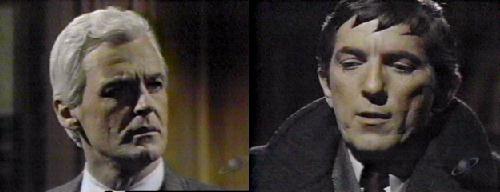 482 - Barnabas and Eric return to Lang's house. Eric, trying to calm Barnabas, says Cassandra is a most inefficient witch, doing little but costing him sleep. Barnabas insists that isn't so. There's no sign anyone was in the house--but the talisman is gone--and with it your safety, says Barn--and now she can do whatever she wants to you. Eric agrees the talisman and the protection it provided are gone. He says she couldn't have known it would be there, he could have been carrying it. Barnabas says whoever came for the talisman would have been waiting for Eric to return, and he would have had an accident--talismen are rare, so they don't know if they can find another one. Barnabas apologizes--I feel badly that you've changed my life for the better and this is your payment. Eric says he'd do it again. Barnabas wants to find and burn Cassandra, it could be done and no one would know. Eric says too it would result in too many questions, and doesn't want his work to be endangered. Jeff Clark, on his way out, demands to know what happened to him. Eric says he fell asleep, which Jeff finds odd. Barnabas looks guilty and walks away, allowing Eric to speak alone to Jeff. Jeff refuses to help Lang with the experiment, and Barnabas thinks they should let Clark leave Collinsport. Jeff is staying in town, he has friends here now. Jeff's parting shot to Lang is that he knows something happened to him last night. Barn assures Eric Julia's hypnotic skills will prevent Jeff from remembering. Eric and Barnabas discuss the qualities needed for a eplacement assistant--good hands and lots of nerve. Barn suggests Willie Loomis, and Lang says he needs him immediately. Barn says Julia can release him from the mental institution, if she will, and Eric says Barn must talk Julia into it, if he wants to be free. Lang will go without sleep until the project is finished, and tells Barnabas he is as important to the experiment as he is--Barn will give his creation life.