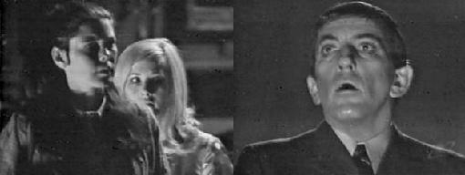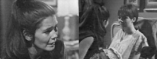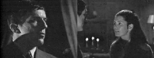 he segues into the story of a young woman who was being chased by her lover. He catches up with her on the precipice of Widows' Hill and presses his lips to her throat. She tears herself out of his embrace and tumbles over, and is found by her lover at the foot of the hill, "Broken. . .lifeless. . .BLOODLESS!"--yet her face was serene, as though this death was what she had wanted. Carolyn, in tears, stops his tale in it's tracks and announces she's going up to bed. "Did my story startle you?" Barnabas asks. (no, just scare her nearly to death!) Carolyn heads up to bed; she's had enough. Vicki, however, not only seemed to enjoy the story, she has connected it, especially that "bloodless" part, to what's going on right now in Collinsport. The animals, Willie and Maggie all suffered blood loss, she reminds him, how odd that he uses that word. (doesn't this make you at all suspicious, Vicki?) His story was from the past, Barnabas reminds her, and she speaks of Maggie's sleepwalking and that strange phone call she got that sent the rescue team to Eagle Hill (no, she didn't recognize the voice of the caller, she tells him).
