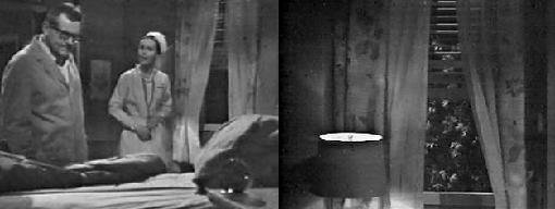 Of course, Maggie, after waking up and gasping that she feels like she's suffocating, gets the nurse to open the window a crack (looked like more than a crack to me). I guess she had to invite Barnabas into the hospital in this manner. A short time later, Maggie gasps for air, lifts herself up in the bed, then collapses. The nurse finds no pulse or heartbeat, and runs from the room to get Dr. Woodard, who is out in the hall. She tells him it appeared as if Maggie had died, but when the two of them return to the room,