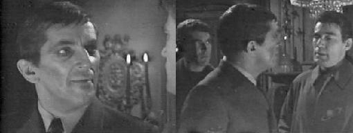 He quickly offers an alibi to the two men--Willie came directly back to the Old House after calling on Sam that night, and had no time at all to make any phone calls along the way. And he, Barnabas, has no phone, so... Burke hears a floorboard creaking and Barnabas dismisses it as the normal noise an old house makes. After he's sure the Burke and Joe are gone, Barnabas calls to Maggie to come out. She seemingly floats towards him as he assures her he's safe there with her.