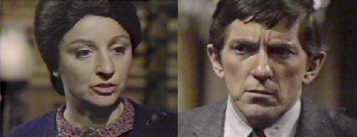Tony and Cassandra stare at each other, and it appears she's hypnotizing him. He walks right past Mrs. Johnson, who tells Cassandra David and Roger are in the drawing room. Cassandra fusses with her hair and dress. She's so nervous! She wants Mrs. Johnson to wait for her. David won't bite you, says Mrs. J, but Cassandra really wants to make a good impression. Cassandra asks Mrs. Johnson if she feels all right, a question which puzzles her--I feel worn out!--I slept well--I always feel worn out, so I feel the same today as any other day. (I love this lady!) Cassandra expresses concern for Mrs. J, but Sarah says she's the healthiest person in the house. Cassandra checks herself once more in the mirror and Mrs. Johnson does, too, after she leaves.