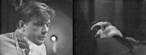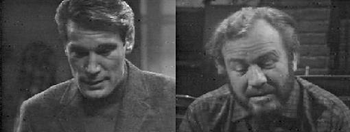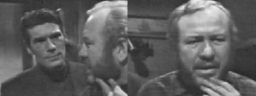 Willie is forced to gasp out the information that he had to let Sam in and allowed him to take the painting home with him. Barnabas pushes Willie to the floor angrily, then rises, off camera, from the coffin. He reminds Willie that they must have no visitors who might see their guest, and that he's vulnerable. "You can't ever escape me," Barnabas reminds him. Willie knows that. (Oh, he looks so sad and resigned!)