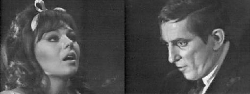 Today, we saw the truly cruel Barnabas, and how venomous he could be when crossed. Maggie wanders into the cemetery, where, unfortunately for her, Barnabas is the one who finds her--and promptly grabs her around the throat. He drags her to the mausoleum where he opens the secret panel. "Come," he orders. She tries to run away from him, so he snatches hold of her, twists her arms and demands that she never leave him, never. "You must stay with me always, Josette" he entreats over and over. He's going to have to punish her for her attempt to leave him! She insists she wants to stay with him, and falls down sobbing on one of the coffins in the outer room. Her crying upsets him, and when he reminds her who she is,