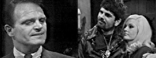 Buzz rides his motorcycle to the front door of Collinwood and knocks. Liz answers, but tells him she will let Carolyn know he's here, but he can't come in. In the foyer, Carolyn coldly informs her mother that they must talk, since Buzz will be Liz' son-in-law soon. Carolyn joins Buzz outside in front of the door, where he smokes a cigar. Carolyn kisses him. He isn't pleased at being denied admittance to Collinwood, but he wants to get going, anyway. Carolyn talks him into coming in; she wants to make sure he is allowed to enter next time.