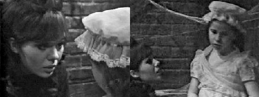 Later, Maggie sings London Bridge in a slow, strange fashion. Barnabas appears in her cell, but she doesn't respond to him until he places a hand on her shoulder. She freezes and moans, "No!", begging him to leave her alone--she is afraid he's going to kill her. He plays the music box, but she refuses to even pretend to be Josette.