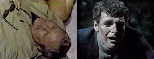 Maggie demands to be let go and Willie encourages him to do so--she never did anything to you. She tells Adam he's hurting her shoulders. "Hurt!" he repeats, and releases her. Willie tells Maggie to get to the phone, but she's afraid as Adam caresses her hair and stares at her (loves long hair on the ladies)! She backs up to the phone and dials the operator. Adam simply watches, but then he yells "No" and grabs the phone from her, pushing her away. Willie screams for Adam to look at her. "Willie hurt Adam!" the big man says, and Willie tells him he didn't mean to. Maggie tells Adam Willie is already hurt-look at the bruises. Quickly, frantically, Willie tells Adam he can help him-get him food like he did the last time. Adam needs food, the big lug concedes, and Willie tells him to stay right there and he'll get him food. Willie shouts to Maggie to get some jewelry, give it to Adam. Willie holds up the sparkling earrings for Adam's inspection. A car pulls in. It's Sam, and Maggie tells him not to come in. There's a madman here, she explains, a maniac--Willie is here with her, and the madman tried to kill Willie. Sam asks for a description of the man, and he assures her Adam won't hurt him. He calls Adam, who comes forward eagerly. Maggie gets upset at this scenario, fearing for Sam's life, and she picks up a hammer and attacks Adam with it. "You don't know what you're doing!" she screams, and Adam, hurt once more, attacks Maggie as the blind Sam cries out, "What's happening?"