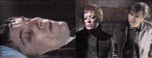 Back in the woods, Adam runs from the terrible things he's done, frightened. Maggie hovers over Sam, sobbing. Willie tells her the doctor will be there in a few moments. She worries that her father hasn't come to, opened his eyes or moved, and she's terrified. Why hasn't be come to? He's dying, she cries, my father's dying.