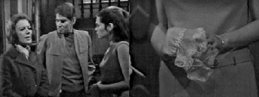 NOTES: Julia wants everyone to believe Sarah is imaginary now, too, in order to protect Barnabas. This little girl ghost is Barnabas' sister, she realizes, and could very well do something to betray him, and ruin her own important plans. I was always amused at how well Julia got around Dave; how smoothly. Was there a romance between them back then? They act only like friends now, but who knows?