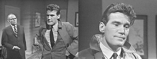 Police station - Burke eyes all the wanted posters on the wall, arms crossed over his chest. See anyone you know? asks Carter, joining him. I graduated from that class five years ago, says Burke. Has it been that long since you go out of prison? asks Carter. My sentence was reduced, says Burke--I was a good boy--still am. I know, you keep telling me, says Carter. I've been thinking about that question you asked me, says Burke--who else might be responsible for that accident. The phone rings. Carter tells him to hold it. Put him on, says Carter--just a second, Burke, long distance--Frank, how are you?--just grand--look, I left word for you to call me collect--well, if the New York Police Department has all that money to spend on phone calls (Burke pays attention to this), it's all right with me--did you come up with anything?--he looks at Burke--I see--look, Frank, where are you?--can I call you back in 10 minutes?--good, call you back soon. Burke taps his lip, looking quizzical. Did you think of anyone? asks Carter. No, and that's the point, says Burke. So you're the only pigeon, says Carter. I didn't know you had business with New York, remarks Burke. We get inquiries now and then, says Carter--that's the trouble, up until now, you're the only one I could put my finger on. Yes, says Burke angrily, and you're gonna keep on putting your finger on me, aren't you?--I'll tell you one thing right now--I came to this town for a visit--and I don't want you hounding me for something I didn't do! Hound you?--I wouldn't think of it, Carter assures him. What do you call searching my room? asks Burke--what do you call calling people in New York and asking questions about me--and don't try to tell me that phone call wasn't about me? You're beginning to sound more and more like a man with a guilty conscience, says Carter. All right, let's get this over with, insists Burke--you came to my room to look for a bleeder valve--the one that was stolen from Roger's car. Maybe, says Carter. Was it there? asks Burke. Nope, says Carter. That ought to prove something, says Burke. Doesn't prove a thing, says Carter--if you took that valve off, you'd be a darn fool to hang onto it. Why do you go on looking for it? demands Burke. It's my job, says Carter. You do your job, says Burke, but get offa my back and stay off! I'll be seeing you, Burke, says Carter, his hand on the phone. Burke leaves. Carter asks for Frank Palmer.