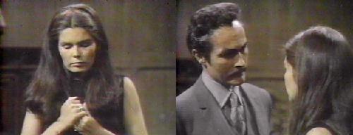 Best of all was the final scene between Barnabas and Cassandra, who looked very romantic together, by the way, despite the content of their scene. His gloating over her was well-deserved, and the subtle way he revealed to her that her attempt to re-curse him had failed, by standing there, clutching her, and watching the sun rise with her, was very effective, more so than just telling her he wasn't a vampire. You feel that if Julia had been watching, she'd have bounced up and down and let out a cheer of delight.