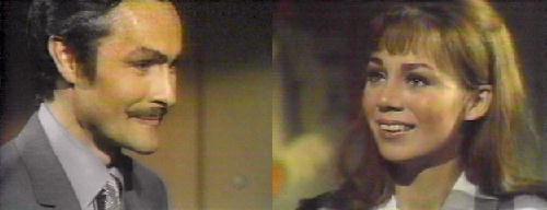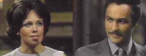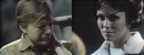 He refuses, but she is insistent, and he has no choice. Hypnotized, he listens raptly to her. "Tell me everything you know about Barnabas Collins," she demands. What happened after the dream? Willie tells her Julia and he found Barnabas after he'd been attacked by the bat, and there were two gashes in his neck and he was bleeding. Julia found no heartbeat. They buried him. Cassandra is shocked to hear this. Willie says Barnabas told Julia he wanted to be buried where nobody could find him, if it happened (this wasn't true; he wanted to be staked). Willie goes on-he dug the grave in the woods, put the coffin in the ground and covered it with dirt. Then he returned to the Old House with Julia, who was going to give him a job at Windcliff. Willie returned to the Old House and there he was, alive. How? asks Cassandra, but Willie has no idea. He escaped the curse was all he told Willie. Cassandra is terribly upset that Willie isn't more forthcoming. He says such things scare him, and he'd rather not know. He's telling the truth, he can't lie to her. She sends him back to Collinwood-he'll forget that she summoned him. He walks off, slowly, and she is in despair. She was so certain he knew something! She starts climbing up on the terrace and finds Nicholas sitting there. "Well, Cassandra," he says, sounding jubilant, "another failure!" He witnessed her fiasco and could almost pity her as each tick of the clock brings her closer to her own destruction. She learned a great deal from Willie, she says, Barnabas did revert to what he was, temporarily, and he was buried in the earth-so her conversations wasn't a complete failure. Nicholas wants to know why Barnabas didn't revert to being a vampire permanently, and how did he escape from his grave? Find out those things, he says, if she expects him to spare her. She doesn't know those answers, but there must have been an intervening factor. She will learn what it is and remove it, she swears, and Barnabas will become a vampire again. She needs a little more time, she pleads, and he tells her how much her pleading bores him. Be reasonable, she asks, how can I learn what I need to know before midnight?--I need a day, a week! He insists he's been lenient enough already. She begs and begs for more time, and he tells her to stop it. "All right, Cassandra!" he says, he's decided he won't destroy her at midnight if she can't come up with the info-her pitiful pleas have caused him to change his mind. She thanks him, and he advises her not to, so relieved, but then he drops the bomb-he's changing her deadline to 9 PM, one hour from now! He's quite annoyed with her failure and pleas for mercy. If she can't obtain the necessary info by then, he will destroy her. She says she can't find out in an hour, and he advises her to, instead, spend the next hour preparing for the moment of her destruction. (He is so good here, so wicked and unrelenting, you've gotta love this guy!)