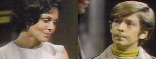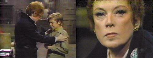 Old House - Julia answers David's knock. He says he must speak to her, he had to sneak away from Collinwood. It's about the tape recorder-there's something funny on it. Music, then a man's voice. Julia is attentive. The man speaks to you, says David, and says things I don't understand. Julia puts it together-Eric left her a message. David explains something about Barnabas and Adam, if Adam lives, something would happen to Barn, but if Adam died, something else would happen to Barnabas. David doesn't remember specifics, but Julia urgently says he must try to remember. David can't-it makes no sense. Julia puts her arm around David and they head back to Collinwood. Nicholas is furious at Cassandra for letting Stokes find out about her. How did he, demands Nicholas, and she explains about how Stokes learned of the dream curse, forced himself to have the dream, forced her, as Angelique, to come to him. He knows Cassandra, and while she tried to deny It, Stokes, didn't believe her. Nicholas spits out that she's a fool. She reminds him Stokes couldn't stop the curse. Nicholas wonders how much power he has, and she doesn't know how much Stokes knows about Adam. Nicholas is angry at how little she does know. The front door opens and Julia and David troop in. Nicholas and Cassandra hear them and meet them in the foyer. Cassandra is annoyed David isn't in bed, but he says he isn't a baby, and doesn't care that she wants to speak to Roger. She and Nicholas excuse themselves to get some air, and David and Julia go into the drawing room. David plays the recorder, but the music isn't the same (it's the same creepy music used in THE SHINING). They wonder who took the tape, and David says Cassandra heard it and got all excited. Julia shakes him slightly and tells him he must remember what's on the tape, but he can't. David doesn't understand the tape's importance, or why someone would want to take it, and suggests Cassandra took the tape and left it in his bedroom.