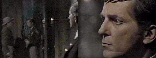 Grinning at his own cleverness, Barnabas hides the ring in the candlestick. As the sheriff searches Willie's room, Barn tells George and Sam that he still believes in Willie's innocence. When asked, Barnabas says Willie did go out at night, that once his chores were finished, he was free to do what he pleased. When asked where he thinks Willie might have kept Maggie, Barnabas reiterates he prefers to think of Willie as innocent. We see a microphone appear in a shot right about here.