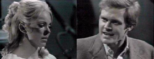 Collinwood. Carolyn lies asleep, and thank God, it's OUR Carolyn. Her doorknob turns. Adam's oversized feet enter. He touches her red hair ribbon and, when she awakens with a start, tells her not to be afraid--I wanted to leave forever, confesses Adam, but couldn't--I couldn't bear not seeing you again. She asks where he went. The woods, he replies. She seems upset that he stayed there alone. He sadly tells her he missed her very much--did she miss him? She reluctantly says she was terribly concerned about him, hiding her real feelings. Did you miss me? he persists. She finally admits of course she did. He's pleased she isn't angry he came back; she felt it her fault he left because she treated him badly. He grins when she says she WANTS him to stay. They must be honest with each other, she says, and he says he isn't afraid of that. She says his expression of feelings makes her uncomfortable, and she fears hurting him or making him feel rejected--like the night Adam saw her with Tony--she knows that depressed him. She knows he means it now, but if his feelings about her are the same, it will be difficult. He considered it while in the woods and realized he wasn't fair with her--he must live his life and she must live hers. She calls him an amazing creature and he turns away. Just a creature, he says to himself, not a man. She notes his change of mood and he turns curt again. She knows something is wrong. He just wants them to be friends like before, he says, and she says nothing would maker her happier. I want to make you happy, he says. She tells him to go to his room, because she'd have to explain much if he were found in hers. He asks her to come see him in the morning and she promises she will. He'll be waiting for her. She presents him with a gift--a green sweater to replace the one shirt he has.