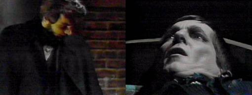 Quentin taps his fingers on his knee. Petofi takes another drink. Sixty seconds, says Q--are you going to release Barnabas to me? Petofi asks, why do you need him--are you going to the future, too? No, says Q, if that's your intent, I don't share it--my future is limited by the moon, and without Barnabas, I have no hope. You're a fool, says Petofi--I told you I'd already dealt with your curse. Prove it--in 30 seconds, suggests Quentin. How can I? asks Petofi. Yes, how can you indeed? asks Q, and how can I believe you? If you won't accept my word, it's impossible, says Petofi, swilling down the last of his drink--even if I offered to cure you tonight and go through some contrived ceremony, would you believe me? No, says Q. I don't want the gypsies to come here, says Petofi. Why are you so afraid, with the powers you have? asks Q. Count Petofi explains, the Romanos took my hand, 100 years ago, the grinning Nicholas Romano took my severed hand in his, staring at me--I was still conscious despite the pain, and looked into Romano's face with all my power and pride I'd ever had to take away that smile and make him feel the pain I felt. "Do you know how I hate each generation of those Romanos, every male child born to them?" snarls Petofi. Ten seconds, says Quentin--five! The clock strikes one. STOP! screams Petofi, you can have Barnabas Collins! Quentin demands the key to the coffin. Petofi hands it over. Quentin enters the second room.