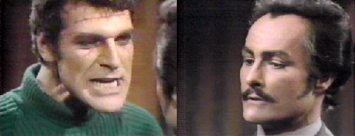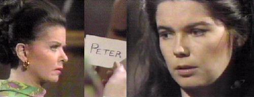 NOTES: So what does this mean? That Peter is Jeff and Jeff is Peter? Why can't he marry Vicki? So he was transported from 1796 to 1968--marry the woman you love and be happy, you imbecile! Why cancel the wedding? Because of Eve? There's nothing between you two anymore, so who cares? Jeff is clearly not dead (at least from the neck down), so why is he acting so crazy?