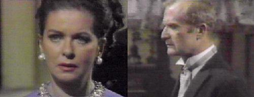 Liz adjusts Vicki's veil, telling her the beautiful veil was imported from France for Naomi's wedding to Joshua--it will bring Vicki good luck (after what happened to Naomi and Joshua?--burn it!!!). Vicki thanks Liz for the veil, the wedding, everything. She remembers how she felt the day she was coming to Collinwood on the train, not knowing her, Roger, anyone. She wondered if they would like her, a stranger. Liz assures her she was never that (this would have been the perfect time to reveal her true identity to her, sadly, they didn't). Vicki says she always felt like a stranger--now, sometimes I think I dreamed it all and I actually grew up here. Liz fondly says it seems you've always been here--before you, Vicki, David was so much more difficult than now, and it's thanks to you--we'll miss you very much. Vicki assures Liz Collinwood will always mean home to her. They hug. Roger comes in, grim-faced. Vicki is smiling, radiant, and Liz asks her brother if he isn't going to tell her how beautiful she is. Roger agrees, but he didn't bring up her flowers--Jeff wants to see you, he tells her. Before the ceremony? demands Liz--impossible! Where is he? asks Vicki anxiously. On the terrace, answers Roger. Liz wants to go tell him it's bad luck to see the bride before the wedding, but Vicki wants to go. Liz is upset.