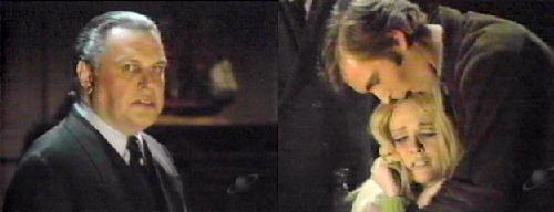 Up in Vicki's room, Liz encourages the sobbing girl to cry as much as she wants to--I know how terrible this is for you--I'm trying hard to understand. Vicki realizes that. Stokes knocks on the door. Vicki tries to compose herself. He apologizes to her for the things he said. She says she should have listened; she panicked, thinking she'd never see Jeff again unless she. . .the curtains billow. Vicki screams, "LOOK!" Liz closes the window, noting the silence. Vicki picks up the watch and sees the watch is back at 11:25 again. Liz advises her to stop thinking of Jeff (rather callous, that), and Vicki says it's all she can think about. She says he's here, the watch has started again. Liz says no one else is in the room, and asks Stokes if he feels any presence. She asks him to tell Vicki no one is here, but replies that he can't. Vicki, smiling, is sure her husband is there--don't leave me, she begs--tell me what to do--don't keep putting me through this--tell me what to do. The room is filled with the sounds of an astral manifestation, then a glowing blue orb. Vicki is thrilled, sure it's hubby. The other two stare at her. She's very disappointed when the orb fades. "You saw it!" she says to Liz and Stokes. We know he's been trying to reach me, but why can't he do it? Stokes says he might know a way. He tells Liz to stay with her--I'll be back, he promises. Liz tries to comfort Vicki, apologizing to her for ever doubting her. They hug.