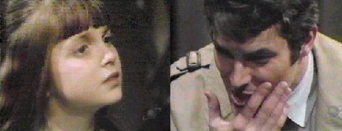 Barnabas comes downstairs and finds Amy standing outside the house. He tells her to come into the drawing room, he wants to speak to her. (She's wearing bright green shoes, too.) Amy joins Barnabas. He tells her something has happened here tonight. She asks if it's something to do with Mrs. Stoddard. It affects all of them, especially Liz, answers Barn. I knew it, says Amy--Liz had such a strange look in her eyes when she walked past her in the hallway a few minutes ago. Barnabas asks if Liz left the house. Amy says yes--and Liz wouldn't say anything to her. Barnabas, preoccupied, tries to get Amy to go upstairs, but she shrilly protests she wants to help Mrs. Stoddard. No, says Barnabas, you can't help, just go upstairs. Amy refuses, she wants to wait until Liz comes back (very argumentative with an elder, isn't she?) She begs Barnabas to allow it. Barnabas tells her to wait in the drawing room on the sofa, then runs upstairs. Amy leaves the drawing room, takes her coat (another shade of green) and leaves the house. We hear the ocean, see the moon.