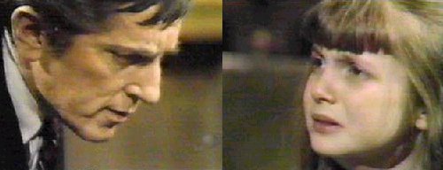 Julia tells Barnabas that Liz is in bad shape--this is one shock she may not recover from--she had a serious relapse because of Vicki's leaving, and Liz associates it with a slow kind of death, the kind she thinks is coming for her. It's all in her mind, surely, protests Barnabas. It's a very real threat to Liz, Julia assures him--I've given her a sedative, and perhaps in the morning, her outlook will be better. Barnabas fears Liz will be worse. Julia says she has no answers, but Liz does have an alarming preoccupation with death, rooted deeply in her mind--I don't know where or how it began. With Cassandra, says Barnabas--considering she and Liz hated each other on first sight--it must be a spell Cassandra cast. That doesn't matter now, says Julia, Cassandra is gone. Barnabas supposes she's right. Julia got the story about Vicki from Liz. Barnabas can't bear to contemplate life without Vicki. Julia touches him arm, telling him she's sorry. Barnabas wonders why Jeff had to come and take her away-- why?--WHY? It was Vicki's choice to make, says Julia. Barnabas doesn't want to hear that. Julia tells him she's spoken with Vicki since Jeff's disappearance, and the young woman was willing to sacrifice her life to be with him. This enrages Barnabas. Julia says he must accept this for his own peace of mind. Barnabas spits out that he'll accept she's gone and he'll never see Vicki again--but I blame Jeff for interfering in the first place! I can't force you to see what you should see, sighs Julia. Barnabas wants to speak to Elizabeth, and he wants Julia there. He turns and tells her Chris called, saying it was urgent, but Julia knows what it's about and says she can call him later.