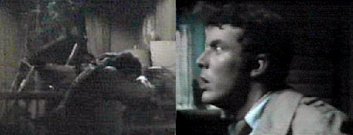 At the Collinsport Inn, the curse of the werewolf iapparently stronger than Dr. Hoffman's sleeping pills; Chris the wolf man exits his room.