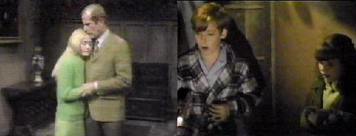 Roger, Carolyn and Liz troop downstairs. Roger is going to search the grounds, but won't let Liz--and don't phone Chris until after the kids are found, he says. Carolyn and Liz go into the drawing room and wonder why David had to go out tonight in a storm. Carolyn feels a hand pushing her toward the door. It's Magda--she must want us to go someplace, the only place in the house we haven't searched--the West Wing. Carolyn thinks they should go, and if Roger won't go with her, she'll go alone. Roger follows her, annoyed. He won't allow her to go alone. (How could they have filmed the same scene twice, or put it in twice? Weird?)