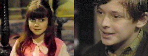 Morning at Collinwood - Amy is in a sweet little dress, and pretty white stockings. David comes in from outside and Amy asks where he's been--I've been waiting for you. He doesn't answer at first, then sullenly says, "Just outside." He doesn't seem interested in what she wanted, but notes she's been up there again. Amy tells him HE wants them both up in the West Wing--he wants them to play the game again. David turns on her and says, "It's no game, Amy." What they did with the wire--they didn't have to do it. Oh yes we did! says Amy. David says he's never going to that room again. Amy says Quentin won't like it, but David says he doesn't care. He'll DO something warns Amy. David asks, "WHAT? What can he do?"