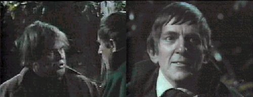 After all the same dialogue we heard between Ben and Joshua, Ben reveals the only way to destroy Barnabas--the wooden stake through the heart--of course, Forbes won't be around in the morning to do the task. Ben laughs over this again. The dogs howl, and the two men know Barnabas is getting closer. Forbes tries to make Ben stay with him, then spots what he thinks is his salvation--the crossbow and arrows. Forbes changes tactics and says it isn't fair to keep Ben with him. He encourages him to go--"so I don't have to die a coward's death." Ben asks Forbes if he has something up his sleeve. Nathan suggests he leave the room--"GO ON, LEAVE ME ALONE!" he screams. Ben goes. Forbes takes down the crossbow and an arrow, remembering what Ben told him about the wooden stake. It's very close to nine.