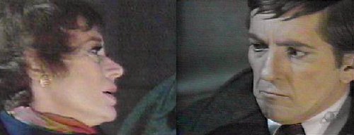At the Old House, Julia tells Barnabas Sabrina KNOWS. Why didn't she tell? he asks. She will, predicts Julia. Barnabas points out that she had every opportunity to tell--and now Ned, who stays at her elbow every second, is always there--we should have stayed with her. They agree it's tragic, Ned spending every cent he has to hunt Chris down. . .taking care of Sabrina himself--and the girl, she hasn't looked in a mirror since that terrible day. And Chris, poor Chris, having all this on his conscience. Julia asks what they can do--we are involved, if she talks, then Ned will go to the police--we've been shielding a werewolf. Are you afraid? he asks. We haven't been able to help Chris, she says. You were more patient when helping me, he says (love has everything to do with that). I will see Chris through this, vows Barnabas, as promised--I will end the curse, with or without your help, he says adamantly. She nods, gazing at him with love. Now they must find a way to stop Sabrina from telling her brother. . .