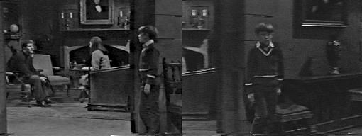 Why don't you like me? demands Vicki. Because you came here to try and take my mother's place, he says, biting into his toast. That's not true, she assures him. Then why did you come here? he asks. Because I was offered a job, she says. You mean me? he asks. She puts dishes on the sideboard. I was offered a job to teach you your lessons, she says, but if you won't concentrate on your homework, and keep on having these morbid thoughts about death and ghosts and widows, it will all be a terrible waste. She pours another cup of coffee. How can I not have thoughts of widows when they're all around me? he asks. They're just in your imagination, she says. Guess my mother had the same kind of imagination, he says--she told me what it would be like here at Collinwood. Do you have a picture of her? asks Vicki. I did, but somebody stole it, says David petulantly. Who would do a thing like that? asks Vicki. I don't know, says David, but somebody did steal it. Any idea who it was? asks Vicki. Probably my father, says David--he wants me to forget all about her. You must be wrong, says Vicki. They used to argue all the time, he says. About you? she asks. Sometimes about me, he explains--you know I think if it weren't for my mother, he would have sent me away. That's not true, says Vicki--and your father doesn't hate you--he probably just doesn't understand you--you know lots of grownups don't understand children. Even when it's your own father? Asks David doubtfully. I don't know, she admits--I never knew my own father. I wish I didn't know mine, he says. You should consider yourself very lucky, she chides him, to have one. You know if it weren't for Aunt Elizabeth, I bet he would beat me, says David. Nonsense, says Vicki. You don't believe what I say, says David--nobody does. I believe you, says Liz, entering the room and giving him a smile and a kiss. She greets Vicki warmly, still calling her Miss Winters. What do you want me to believe? asks Liz. Nothing, says David. All right--I believe it, says Liz jauntily--have you seen Matthew this morning? No, would you like me to go call him for you? asks Vicki. No, says Liz, beaming, I'll go to his house and see if he's home. David asks his aunt what all the fuss was about last night. What fuss? She asks. I heard Miss Winters and Carolyn come running into the house, says David. I don't know what you're talking about, says Liz--anyway, she says, kissing him again, nothing for you to be concerned about. Did you also know my father left the house very very early this morning? asks David. You do see a lot, don't you? asks Liz. More than anyone thinks, says David, sounding mysterious. If anyone calls me, says Liz to Vicki, tell them I'll be right back. Yes, agrees Vicki, and sits back own at the table to drink he coffee. David makes sure Liz is gone, then asks Vicki if she likes his aunt. Very much, says Vicki. So do I, he says, almost as much as my mother. She feels the same way about you, says Vicki. If anybody tried to hurt her, I'd kill them! says David. Is that all you can think about? asks Vicki, concerned--hurting and killing people? Why not? he asks--they're all trying to hurt me! He leaves the kitchen. Vicki looks sad. Someone knocks and Vicki asks him to see who that is. David goes to the front door and finds Joe there, who asks if anybody is home. I'm home, points out David (fresh)--but if you mean Carolyn, she's still asleep. What about Mrs. Stoddard? asks Joe. She went out for a minute, says David. I'll wait, says Joe, entering the foyer. OK, says David, sitting on the steps. Joe leans against the table and asks David if he's seen anymore visions in his crystal ball of his. Plenty, says David. Come on, says Joe--you really don't see anything in I, do you? Sure, says David, I told you you weren't going to marry Carolyn, didn't I? You don't believe that stuff, do you? asks Joe. Sure I do, says David, maybe you couldn't see anything in it, but I could--it's a real, genuine crystal ball--Burke Devlin gave it to me. Burke Devlin, huh? asks Joe. He wouldn't give me anything phony, says David. That explains a lot of things, says Joe. What does it explain? asks David. I think you're only seeing in that crystal ball what Mr. Devlin wants you to see.