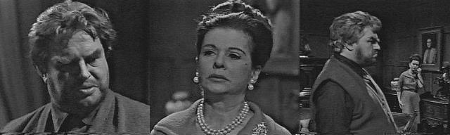 Drawing room - Liz asks Matthew how long he's worked for her here at Collinwood. 18 years, he says, before that, I worked for your father on the boats. And in those 18 years, says Liz, I don't think you've ever told me a deliberate lie. I never will, vows Matthew. When you were telling us what you saw last night, says Liz, you chose your words very carefully--you said you walked from one end of the property to the other and back, and there was nothing there--on your return trip there was nothing there--was there something there when you first went down? there was, admits Matthew. Was it what Carolyn and Miss Winters says it was? asks Liz, after a moment's hesitation. There was a drowned man there, confesses Matthew. Why didn't you tell me the truth? demands Liz, upset. I did, he says, I pushed the body back into the water and watched the waves carry it out to sea. Did you recognize him? asks Liz. Matthew nods--it was Bill Malloy, he says. How could you do such a thing? asks Liz, her face twisted with horror. I thought it was for the best, he says. Did you think it for the best to take the law into your own hands? she asks, racing for the phone