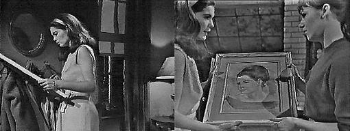 When I write my autobiography, jokes Maggie, I'm going to name you the champion potato peeler of all time. You ought to see me mince onions--I'm ever better at that! says Vicki. The two women sit on the sofa. Tears and all? asks Maggie. By the bucket, says Vicki, smiling. You can take that apron off now, says Maggie, there's nothing to do but sit back and let it cook--I hope you're hungry. I will be, don't you worry, says Vicki, removing the apron. What's a kitchen like up at Collinwood? asks Maggie. Spooky and scary, like the rest of the house, says Vicki. A spooky kitchen, that's one I've never heard of! says Maggie excitedly. Every time you open the door of the oven, you have to be really careful, because there's an old witch getting ready to push you in and make a meal out of you, jokes Vicki--and on top of the stove, they have open fires and huge cauldrons on top, and you have to stir and stir. Maggie laughs as Vicki imitates stirring, and both women quote "double, double, toil and trouble," giggling. It's just a kitchen, says Vicki, bigger than yours--haven't you ever been up there? Are you kidding? Asks Maggie--that first night you landed here and I told you I'd never set foot near that place, I meant it--there are enough spooks around here without going up to Widows' Hill to look for more. Spooks in this place? Asks Vicki. Sure, says Maggie, pointing to the painting Vicki found--there's one, maybe--there are others--have you ever seen a ghost up there. Once, maybe, says Vicki, during a thunderstorm, all the lights went out, I was down in the drawing room, and suddenly there was a flash of lightning, and in the doorway was this black, hooded figure--I called out, but it didn't answer--and then there was another lightning flash, and it was gone. Weren't you scared? Asks Maggie. Terrified, what do you think? asks Vicki. I think you're nuts to stay there, that's what I think, says Maggie, and begins adding silverware to the elegantly set table. Vicki explains that it might not have been a ghost, but Mr. Collins. Even so, says Maggie, the things that are digging at that family came along long before you ever got there--search or no search, I wouldn't stay up at Collinwood. All big houses have stories and legends attached to them, says Vicki, but I just can't let them drag me away until I've found the answers I'm looking for. Answers, says Maggie--I wasn't talking about any 200 year old ghost story--you've got strong nerves, maybe you can stand that kind of thing--I know I couldn't--the trouble started about 10 years ago--believe me, I think they've just hit the boiling point. Are you talking about Burke Devlin's trial? Asks Vicki. Yes, says Maggie. It's funny, says Vicki, ever since I've come here, that's all anyone's ever talked about--but no one will tell me what really happened. Maybe no one knows or wants to tell, suggests Maggie, as Sam returns home. No one wants to tell what? asks Sam, removing his hat. Vicki greets Sam, who asks if she isn't a long way from the hill. Vicki's going to be our dinner guest, says Maggie, go get washed up, Vicki and I have all sorts of things we want to ask you about. Sam nods, but doesn't look thrilled. He goes into what we presume is the bathroom, first giving both women an odd glance. Maggie shrugs her shoulders. Not exactly a bundle of cheer, is he? she asks Vicki.