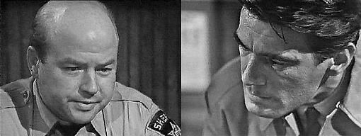 What do you mean, somebody's lying? asks Burke, sitting on the sheriff's desk--Malloy invited me, Collins and Evans to the meeting--he knew that if I wasn't guilty, Roger had to be. And Evans was going to help prove that? asks Patterson. Yes, says Burke. How? asks Patterson. I thought you would have figured that out by now, says Burke--you spoke to Evans, didn't you? Yes, says Patterson, and Collins, I went over your whole story with them, sentence by sentence, they didn't agree with it--both said you were lying--according to them, Malloy never said anything about your manslaughter trial. And according to me, THEY lied--both of them, says Burke. Patterson gives him a look and says somebody lied, that's for sure. So, this is where it ends, says Burke--Malloy dies and nothing happens! I don't have any proof, none whatsoever, says Patterson, that Malloy was murdered! I gave you proof and motive! Says Burke. You gave me a story that's been contradicted by two other men, points out Patterson. Aren't you forgetting that Roger Collins is a pretty good liar? asks Burke. Aren't you forgetting that a jury didn't seem to think so? counters Patterson. What do you want me to do? asks Burke--say that he's so good he fooled everybody with it?--he was lying then and he's lying now--and Evan is lying--and one of them murdered Bill Malloy--and if you want to sit around here playing Truth or Consequences--not me!--I'm not about to let them get away with it! He starts to leave, and Patterson orders him to come back. No! blares Burke, you can tell me not to play detective. You listen to me, commands the sheriff, if you get any ideas about taking this into your own hands, I'm going to pull you in here, put you in a cell, and forget there ever was a key! They stare each other down, and Burke angrily leaves. Patterson looks pissed, too.