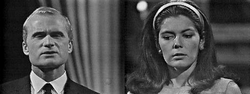 Collinwood drawing room - Then you think it was me, Roger tells Vicki--you think I was driving the car at the time? I didn't say that, says Vicki--it was just disturbing, that's all. A jury heard that same story, says Roger, 12 of them--and they didn't believe it--tell me, what other little items did Burke amuse you with at this fascinating dinner party?--come on, if I'm the subject of a slanderous attack, at least I have the right to know how far it went. He spoke of a meeting in Bill Malloy's office the night he died, says Vicki, he said the meeting was called to clear his name. And he accused me, says Roger. Yes, she says. That of course is a lie, insists Roger, I know it, Sam knows it and Burke knows it. Why would he say such a thing? asks Vicki. Because he's a vicious man, says Roger, he's hated me ever since I took the oath in that witness chair and testified against him--he would use anything, any suspicion, any argument I might have had with Bill at the time. I'm afraid he knows about one argument, says Vicki--you see he asked me if Mr. Malloy had been at the house the night he died--I told him that he came here about 10, and that you and he were very angry with each other. Did you tell him what we were angry about? asks Roger. It was something about a meeting, that's all I knew, says Vicki--if you remember, you came in here and shut the door and I went upstairs. That's precisely what I mean, says Roger angrily--you have no right to report an argument that you didn't know anything about--it's only gossip for Burke to chew on. I'm sorry, says Vicki. What else did you tell him about this argument I had with Malloy? Roger asks. There wasn't anything else to tell, says Vicki--when I came downstairs at 10:30, Mr. Malloy was gone and you were talking on the phone. 10:30? Asks Roger--I was on the phone at 10:30? Yes, we talked about Sam Evans' dinner invitation, do you remember? I remember our conversation, says Roger, but I don't remember any phone conversation--who was I talking to, do you remember? I wasn't paying attention, says Vicki. Do you remember what the conversation was about? asks Roger. Something about a meeting, I think, says Vicki--what difference does it make? None, says Roger, I was just curious. Bill Malloy was gone, says Vicki, and you and I talked about Sam Evans, and then I went upstairs and you left. That's nonsense, says Roger, I didn't leave this house until 10 of 11. Oh no, it was much earlier than that, says Vicki. What time do you think I left? asks Roger. Let's see, says Vicki, I was in the upstairs hallway and I heard the front door slam--it must have been about 10:35, not much later--why? (Time discrepancy!) I simply feel that if you're going to report my movements to Burke Devlin, says Roger, that you should at least be accurate. I wasn't reporting your movements, says Vicki. As you wish, he says, be that as it may, I did not leave this house until 10 of 11. If you say so, says Vicki doubtfully. Good, then we're agreed, says Roger--it's not important, of course, it's just that I have rather a personal fetish for accurateness. It makes no difference to me one way or the other, says Vicki, but now, if you don't mind, I'll go up to bed. Of course, says Roger, and thank you for being so patient. He sees her off with a sick smile, then closes the doors and looks like he wants to be sick.