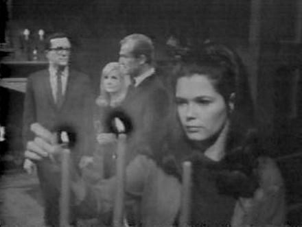 As the séance begins, we get an unusual overhead shot of the table with everyone sitting around it (boy-girl-boy-girl). I don't remember ever seeing another overhead shot in the rest of the series, but I would be delighted to be wrong.
