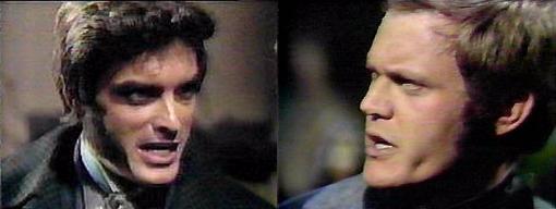 Collinwood - Amanda and Trask sit in the three-chair. I'm afraid all my good intentions won't be enough to keep me away from him, wails Amanda. You never told me who the man is, says Trask. I never will, she says--perhaps I'm being presumptuous, but I feared your concern for me would cause you to confront him, and if anything happened to Trask because of me, I'd never forgive myself. Trask returns the compliment, touching her shoulder intimately, promising, nothing will happen to you, you have, so to speak, come home. She pulls out of his grasp. Where are your things? he asks. At the Inn, says Amanda. I want to go get them, he insists. I'd rather no one knew, she says. Don't worry about what people say, insists Trask--what you're doing is perfectly proper--I wouldn't have it any other way. (yeah, right!) I didn't mean to imply that, she says--you don't want me here, you doesn't know what I'm really like! I have never known anyone so thoroughly before in my life, he says--I understand you and can help you. I'll make a phone call and have my luggage brought over, says Amanda. Very well, he agrees--in the meantime, I'll speak to the housekeeper about getting a room ready for you--I want to make sure you're very comfortable here in your new home. (He's nearly salivating--disgusting!) He leaves the room. Amanda races to the phone. She reaches Tim--there must be another way to do what you want, she insists--I can't stand looking at him, and the way he follows me around the room... This is the best way to handle the situation, says Tim. I don't care, I'm not staying! says Amanda--he's returning, I'll call you back. Turns out it's not Trask, but Quentin, who is pleased Amanda remembers him, calling it an honor. I'm sure a girl like you has a lot of names to remember, adds Quentin (what are the implications of that?)