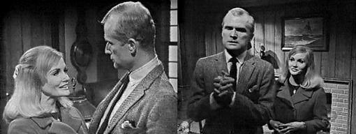NOTES: WHAT is Roger up to here? He's kind to David for the first time ever, and I was even touched for a few moments, until he ulterior motive popped up! Was he trying to lull David into a false sense of love and security so he can get rid of Vicki without appearing to be to blame? That scene in which he told David to handle it but not tell him about it gave me the creeps. You can tell at this point that David is definitely Roger's kid--they are cut from the same cloth! Roger charms Vicki, too, promising her a lobster dinner, apologizing for his nasty behavior to lull HER into the idea that he wants to be friends, to make up for his past behavior. He convinces Carolyn of his innocence, too, not just in the matter of Burke Devlin's manslaughter trial, but as a suspect in Bill Malloy's murder. He disarmed Sheriff Patterson, too, in this ep. Roger is, to put it mildly, a snake, manipulative and evil--and Edmonds plays him with cool, charming relish!