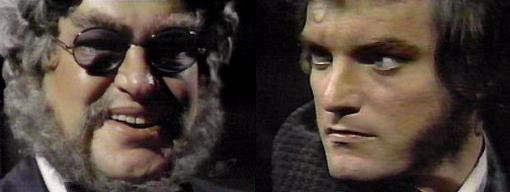 Old Mill - Petofi sits in a chair, looking as if he's expecting someone. Aristede enters and turns on a light, then starts to take a drink. No wine, warns Petofi, because tonight will be the most important night of our lives, more important than the night we arrived at Collinwood, or the night I found you shivering with cold on the embankment in London--more important even than the night I found this (his hand). Aristede notes, your ring is gone. You're observant, says Petofi--what would I do without you?--tell me, Aristede, you are so fascinated by clothes--what do you think they will wear in the time I'm going to?--Julia Hoffman showed up in that obscenely short skirt, but I find it hard to believe men's clothes will be in such bad taste--I must have Beth tell me exactly what Quentin was wearing in the future. You can still ask her, says Aristede, if you trust her answers. The future, exults Petofi--I've lived for 150 years, and for a hundred of them, lived in fear of the gypsies--but in the future, we shall be free. Aristede picks up the wine bottle again--we should celebrate, he says. Petofi takes it from him--I want none of your usual bungling, he warns--and drops it on the floor, where it shatters. Aristede is surprised by this gesture. Everything must be perfect, instructs Petofi, what I am doing tonight will require intense concentration, and he can't afford to worry about you, who has a most important part--soon I will have a visitor who will ask many questions, and I will want to know how my plan is working, then I'll want the interruption I've planned--I will say a certain word, and when you hear it, you will come from that room--the word will be "unknown," because my new life will be just that--unknown. Aristede asks--what will my fate be when you go into the future? You will follow me, explains Petofi. HOW? cries Aristede. Quiet, demands Petofi--he's just about to leave Collinwood, now I will find out if my plan is progressing, if I've been powerful enough to...SHE has stopped him from coming, exclaims Petofi, furious.