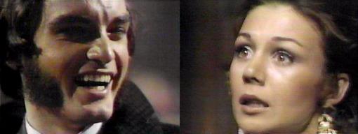 I want to know, insists Beth--won't I enjoy it more if I know what will happen? If His Excellency would have wanted you to know, he'd have told you himself, boasts Aristede--"Not ME!" She gives him a dirty look. (They remind me of squabbling siblings.) Petofi sits in a chair in the room that once held Barnabas prisoner, only a lamp inside. Aristede enters, kneels, and asks is it a good idea to have Beth here?--she once loved Quentin very much. Bring her in, orders Petofi. Aristede does so. Petofi orders Aristede to leave; the latter isn't thrilled. Petofi asks Beth a most important question--how do you feel about Quentin, exactly. "I hate him," she says. You don't care what happens to him? asks Petofi. No, he's going to marry Angelique, she says. You can stand by and watch whatever I think necessary to happen? asks Petofi. Yes, she assures him. And in the morning, you will be very happy, for you will be revenged, he says. Aristede enters. "He is here?" asks Petofi. Aristede nods. Remain in the room, orders Petofi, and both be very quiet--"You know what the word is, Aristede, and what you are to do?" Yes, says Aristede. Good, says Petofi. Good luck, says Aristede. I don't believe in it, says Petofi--it's a poor substitute for will. Aristede smiles at Petofi, then swings the triumphant grin around to Beth.