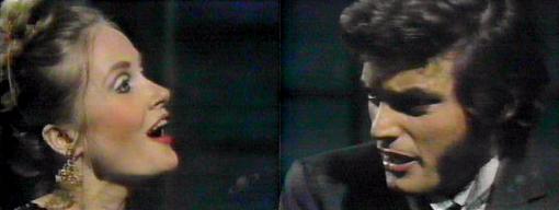 No, of course you think me mad, Kitty tells Quentin--what else could you think, seeing me talking to that strange woman at the rectory? Quentin, wearing his cape, looks away. Why did I go there, what was I after? she demands. Kitty, he says soothingly. You heard what I said to her, now tell me! cries Kitty. You were looking for someone, and it was some kind of aberration, says Q. TELL ME! she shouts. "Barnabas Collins," admits Quentin. Josette's music begins to play. Kitty goes to look at the portrait on the wall, wondering--why was I looking for a man I only met once--a dead man? He touches her shoulders; she spots Petofi's ring. Have you always worn it? she asks. No, he says. Good, if you had, I surely would have thought I was losing my mind, she says. Quentin gazes at the ring and asks why. My husband, she says, wore one very much like it, once--exactly the same! Can't be, objects Quentin. No, of course not, she agrees, calmer, that wouldn't be possible. Quentin asks, do you happen to know Count Petofi? She repeats the name and says no--why? I just thought you might have met him, he says. I'd remember, Quentin, I never forget names, she says--never! He looks at her, surprised by her vehemence.