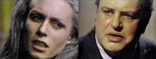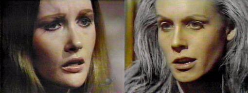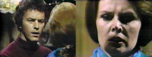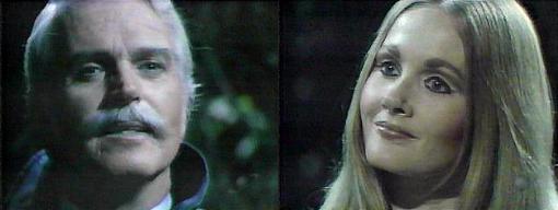 Collinwood - Julia shows Stokes her Tate painting. That's a name from the distant past, remarks the professor. I found it in a little antique shop, she says--is it genuine? Sure, says Stokes, no one seems to have copied or forged any of his paintings--why this interest in late Victorian art? Julia asks, how would I go about finding out if Tate is still alive? This puzzles Eliot--most unlikely, why do you want to know? I can't tell you now, says Julia--it's information for a friend. I'm heading out to see a patient of Dr. Reed's, says Stokes--a woman who had a traumatic shock and lost the power of speech--Sabrina Stuart. Uh, oh, says Julia to herself--her brother, Ned (whom Stokes calls a surly sort), consulted me about her. I feel you're fighting a losing battle, says Julia--I examined her carefully and it's my feeling she will never regain her powers of speech. But I have made progress, says Stokes--she can say several words and phrases, and I believe if I keep working with her, she'll at least be able to tell me what her traumatic experience was--I must go. She escorts him to the door, they shake hands, he leaves. Julia is clearly concerned. Hearing a heartbeat throbbing from Barnabas' portrait, she immediately grabs her bag and hurries to leave. Chris knocks at the door. I'm not that surprised to see you, says Julia--Carolyn told me you phoned last night. Chris is in a tizzy--I want to speak to Carolyn. You can't speak to her now, says Julia, I have some questions--why did you leave Windcliff? I was going crazy in that padded cell! Complains Chris. You can't be here, says Julia, you know that, you could change any minute without warning. Yes, says Chris bitterly, I no longer have the luxury of waiting for the full moon, but solitary confinement isn't the answer--there must be some other way. I don't want to raise any false hopes, she says, but I have learned about a man named Tate, who might help you, if he's still alive--a slim chance. How do you know about him and my problem? he asks. I can't tell you that, she says, after I find him, I'll tell you all. Even if you do find him, says Chris, we might be running out of time--Sabrina, my former fiancee, the only person who every witnessed my transformation, is still in Collinsport--if she talks, she will tell everything she knows.