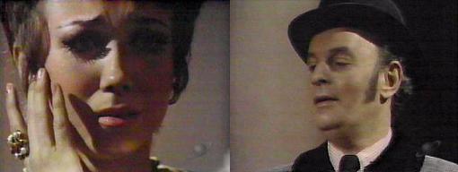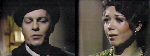 At Collinwood, Carolyn stirs up the fire while Sabrina sits on the sofa.  The last time we were together, says Carolyn, you warned me about Chris, said he'd kill me. Sabrina nods. Did Chris kill that man tonight? asks Carolyn--is that why you took me there? Not Chris, says Sabrina haltingly, not Chris!  But what?--tell me about Chris, please, begs Carolyn. You love Chris, says Sabrina. No, says Carolyn--I don't know if I ever did, and know now I never will--but YOU love him. Yes, admits Sabrina, I love him--and bursts into tears.