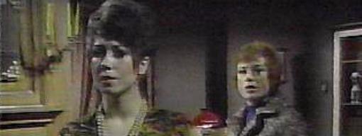 We return to the present.  I remember waking up on the bridge, as if I'd dreamt the whole thing, relates Amanda. But you hadn't, says Julia. No, says Amanda, and as the years passed, my mirror told me I didn't. (Some very poor cuts here.) There's no way of telling when my time is up, adds Amanda, but it's going to be soon, I know it--I'm so terrified that I've found him and he'll never even know.  There must be a way, asserts Julia--today, faced with a reality out of Quentin's past, Grant behaved as Quentin would--if we can find more realities like that, perhaps we can get him out of the mist--I'm going to Collinwood--I'll be back--don't give up--and she leaves. I mustn't give up, Amanda tells herself. There's a knock at her door. Grant! she says--but it's not, it's Mr. Best. I waited until your guest had left, he says, "I hope you're...ready?"