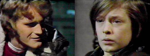 --the two of us always understand each other. "You were Alexander and Michael, weren't you?" asks David. Jeb grins. Yes, he admits--I call myself Jeb now--and you will always do exactly as I tell you. Yes, agrees David. Good, you're a good boy--you get an A, says Jeb, ruffling David's hair--remember the radio your father picked up in Boston for you? asks Jeb--you gave that to me, when I was Michael (actually, Alexander)--I knew then how close we'd be, when you'd learned what you must, and now you have--so I am going to give you something. Jeb displays his leather watch. That's neat, proclaims David. Take it, says Jeb, as a graduation present. You don't have to give me anything, insists David. Jeb removes the watch, revealing the telltale moon-shaped birthmark on his wrist. I want you to take it, says Jeb--and hands it to David. Maggie enters the room and stares at Jeb. "You're the one who caused his accident," accuses Maggie (how did she know?)--what are you doing here, how did you get in? Jeb stands to face her. "I'm Jeb Hawkes," he announces.