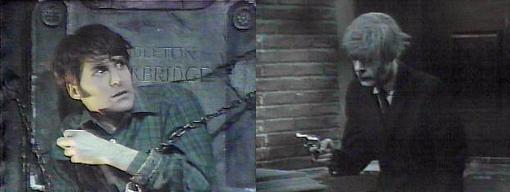 Collinwood - Roger paces. The front door opens; Jeb enters. Roger, angry, says, it's customary to knock before entering this house. Jeb grins--Mrs. Stoddard gave me free reign of the house, he says. Oh, I see, says Roger sarcastically, then feel free, by all means, don't let me stop you. I won't, Jeb assures him. What are you doing here? asks Roger--or would that be out of bounds? I dropped by to see David--to show him some photos I took, says Chris. Of what? asks Roger. You ask a lot of questions, Mr. Collins, says Jeb darkly. I care about my son's welfare, says Roger crisply--it concerns me, the company he keeps. Nothing to worry about, Jeb assures him. That's for me to decide, retorts Roger. Let me finish, says Jeb--David and I have become good friends, and like each other. But he is my son, says Roger, and if I don't like his choice of friends, then it's up to me to do something about it. I suppose it is, says Jeb--what do you plan to do, Mr. Collins? David hasn't been himself, says Roger--I forbid you to see him (bravo, Rog!) Jeb nods and says, that may present some sticky problems--because I don't know how you're going to stop me--he heads upstairs. Roger enters the drawing room and dials Quentin--I had my first run-in with Jeb, and it will be my last--I intend to put up with no more of this insanity--I won't stand by while he corrupts the lives of everyone around me...don't tell me that, Quentin, there is something I can do--have him run off Collinwood, off this property, out of the state if I have to--I no longer care about the risks involved--somebody has got to stand up to him, tell him what a cheap, insufferable pig he is--and I'm going to do it--I'm going to do it, Quentin! He turns to leave the drawing room and finds Jeb standing in the doorway, half-smiling at him.