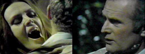 Megan opens her coffin--I've been waiting for you, she tells Roger, then sinks her fangs into his throat. Barnabas watches, sickened, then leaves. Stay here and guard my coffin, Megan orders Roger--do you understand? Smitten, Roger assures her he does.