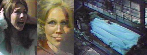 NOTES: I thought all Angelique wanted to do was split up Quentin and Maggie, but it looks like she wants to kill his new bride instead. What a bitch. On the other hand, it's hard to believe someone who lived abroad, as Maggie did, someone who should have some sophistication, is acting like the terrified ingenue. She so reminds me of Vicki here, and not in a good way. I realize that it's all built up for the poor woman, but I was pleased when, at first, she appeared ready to fight back against Angelique's ghost, to keep Quentin as her husband. Now, the witch-in-training has reduced her to a hypnotized, quivering mass of suicidal misery.