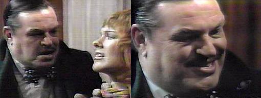 Dead!?--Barnabas looks helplessly at Maggie. (Of course, Maggie brought HOFFMAN'S scarf, not Julia's; why didn't Barnabas pick up on this right away; I did when I saw this episode the first time!)