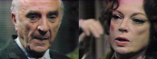 Mausoleum - I want to go speak to Stokes myself, insists Barnabas--we can reason with him, he will tell us something, if we handle him correctly. Stokes was a good friend of mine, says Julia--he's not the same man. He was always a rational man, Barnabas reminds her. He as well as Carolyn lived through whatever happened in that house, says Julia. If we can find out one thing that did happen, says Barn, we can use it to make him talk. How will we do that? wonders Julia--you weren't with me at the records office, didn't see that clerk's eyes as soon as I mentioned the Collins name--I think we are foolish to keep on with this--there is danger in it, I feel it. Listen to me, he begs. Julia continues--when I left Carolyn here this morning, I had the terrible fear that she knew that you were in the mausoleum. But you were wrong, obviously, says Barnabas. I have to trust my instinct, insists Julia--everyone is so hostile, and hostility moves to hate so easily! So, says Barn, we're supposed to run, go back to Angelique's room. hopeful that the time warp will work for us now, and we will re-enter Collinwood in 1970--and simply watch what caused all this?--well, I refuse to do it--now Julia, did you find out where Flagler lives? Julia, angry and distraught, turns away from him, hiding her face, and finally, quietly, says yes. I want to go there now, says Barn. She starts to argue, but he won't hear it, he walks past her and says, we have no choice. He opens the secret panel and they both exit, Julia closing the door using the ring. What if we don't find out anything? she asks. Then we will find someone else, he says. Determinedly, he walks away, less determined, she follows. They don't realize they are being watched from the bushes by Stokes and the clerk.