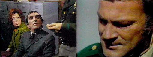 We see a blue light hovering in the drawing room, but it disappears before Barnabas and Julia come downstairs. We must find someplace else to hide you, says Julia--there's no point in staying in this house, surely you can see that. The Old House, perhaps, he suggests. Let's go there now, she says, let's settle it. I'm coming back here tonight, whether you are or not! he says They leave. Barnabas is locking the door when the sheriff appears. "All right, what are you doing here?" he shouts.